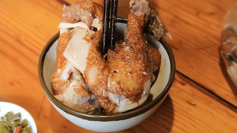 !整鸭脱骨且不破,再在鸭身塞入糯米、薏米、松子、香菇、火腿、虾仁等食材,做成葫芦的形状,实在是技艺精湛