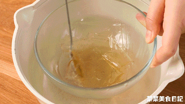 加入吉利丁液好丽搅拌融合,盖上保鲜真的膜,室温冷却苏备用牌子