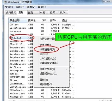 4、选择未使用且有大量临时内存的选项来结束该过程。