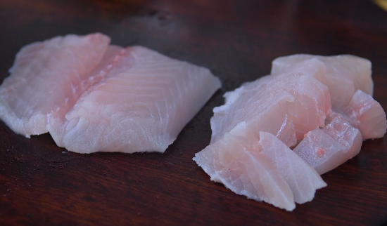 1,准备好一条草鱼剔除鱼骨和鱼皮,清洗干净把红色的鱼肉剔除掉,红色的鱼肉比较腥,再切成小块。