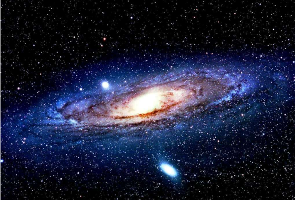 银河系像一个旋涡,星体、星系在其旋转臂上围绕中心旋转。