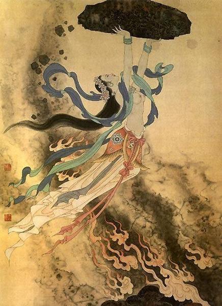 丨女娲生活的年代,灾害频繁,天塌地陷,淫雨不断。女娲炼石补天,止住淫雨。