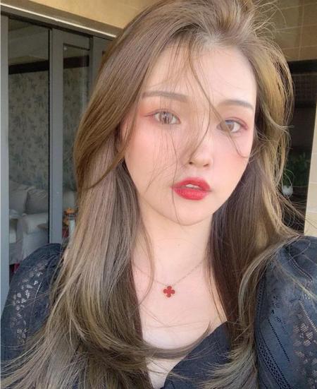 闷青色发色要在两个月以后,就会褪色到类似于这种棕色,也是很好看的,但是没有闷青色更容易提亮肤色,如果你的肤色比较黄,可以染一款深闷青色,是十分显白的。