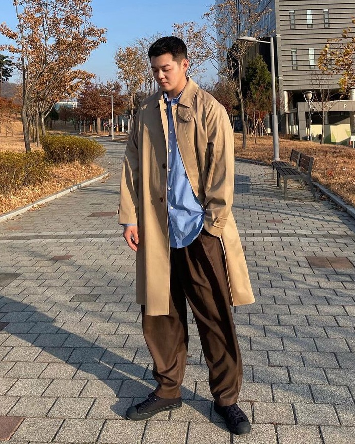 男生的穿衣搭配,颜色的选择会让自己的穿搭呈现不一样的视觉感官。在冬天这种季节,选择大地色的衣服,能让你看起来更加温暖。比如这件卡其色的大衣,满满的暖男气质,里面搭配一件蓝色衬衫看起来特别舒服,裤子选择深驼色,鞋子是黑色的休闲鞋,整套穿搭的颜色有一种由上往下的沉淀感,非常时尚有魅力,满满的男神范儿。