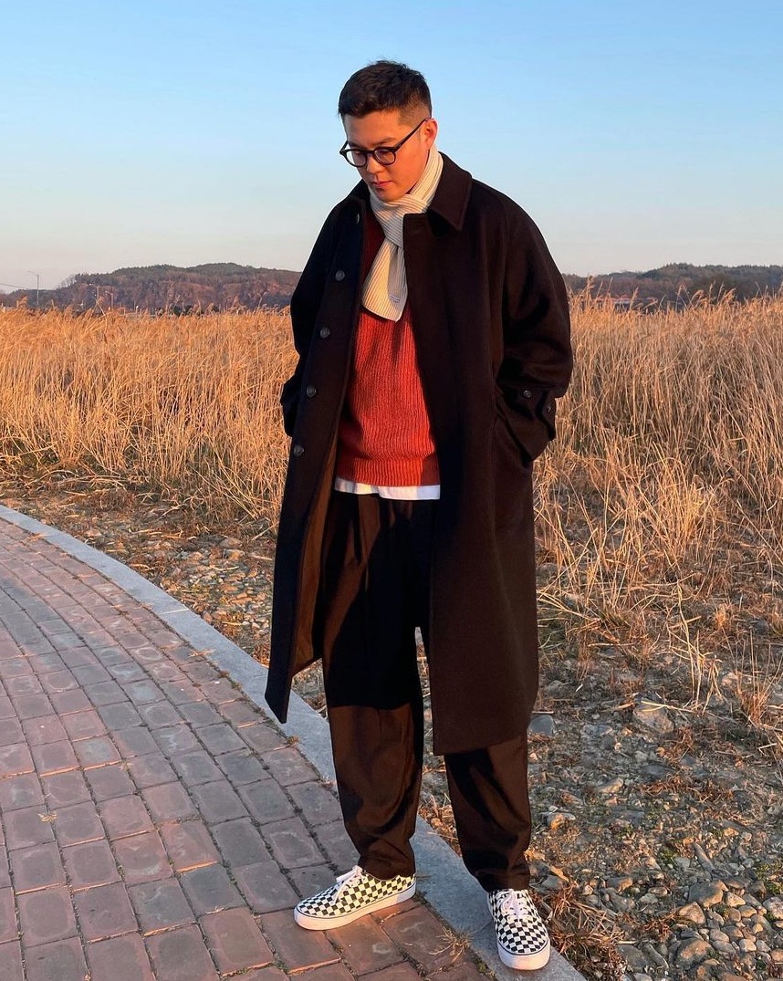 在冬天这种天气,大衣也是一件特别时尚的单品,特别是身高比较高的男孩子,穿上瞬间就有了“男神范”。如果你只会黑白配的话,整套穿搭就会太单调了。因此,我们可以选择一件红色的毛衣作为内搭,保暖的同时还特别时髦。下半身则选择黑色的裤子,和大衣有呼应。鞋子选择黑白格纹的款式,满满的英伦潮男范儿。