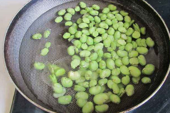 2、将蚕豆倒入锅中,倒入大量的水,让蚕豆浮在水上不要让其接触到锅的底部。