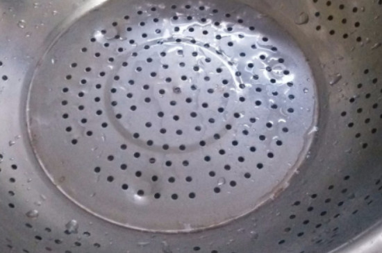 4、将蚕豆倒入不锈钢的筛子中过滤水分,迅速用冷水给蚕豆反复冲洗,能够保持蚕豆鲜艳的颜色。