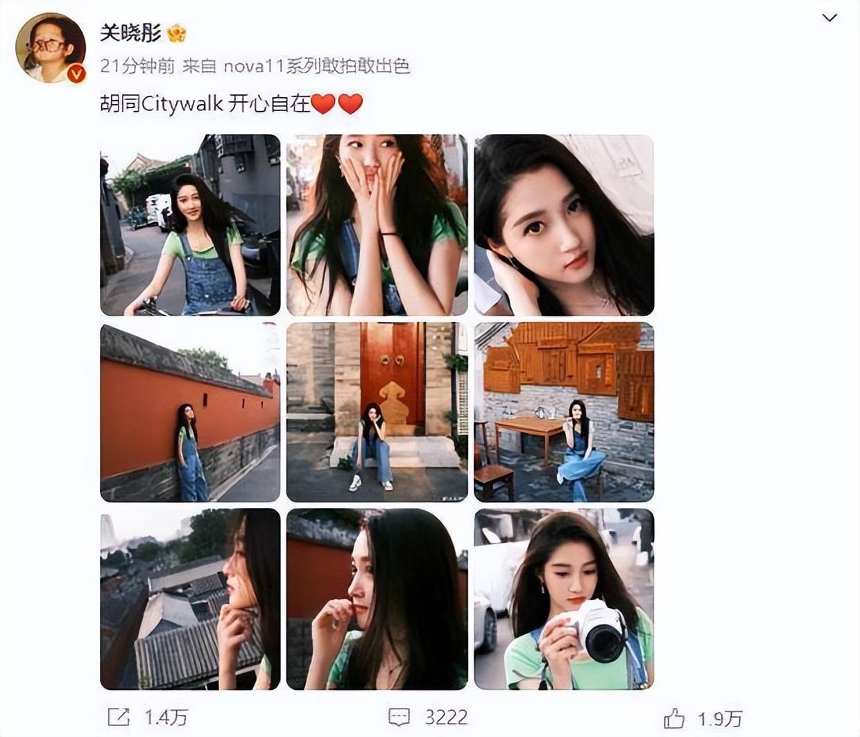 关晓彤生日晒美照 穿背带裤穿行于老胡同开心自在