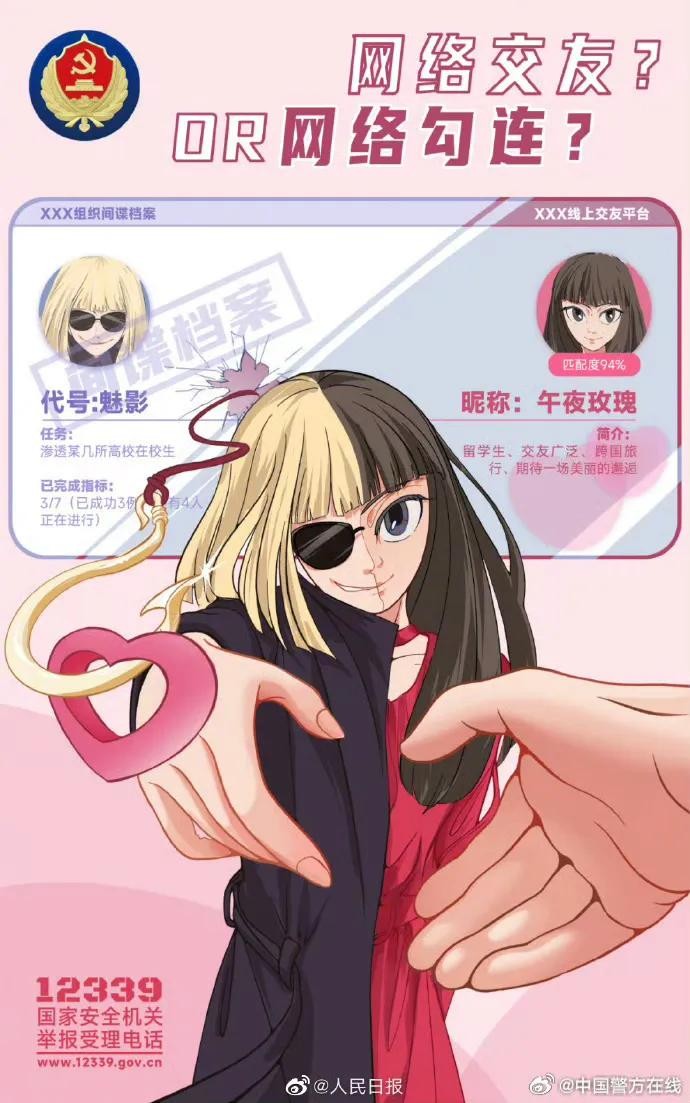 自2023年7月1日起,新修订的《中华人民共和国反间谍法》正式施行。网络交友、学术交流、兼职咨询…间谍原来有这些面孔 发现可疑情况,请及时拨打国家安全机关举报受理电话12339,提高防范意识,转发周知!