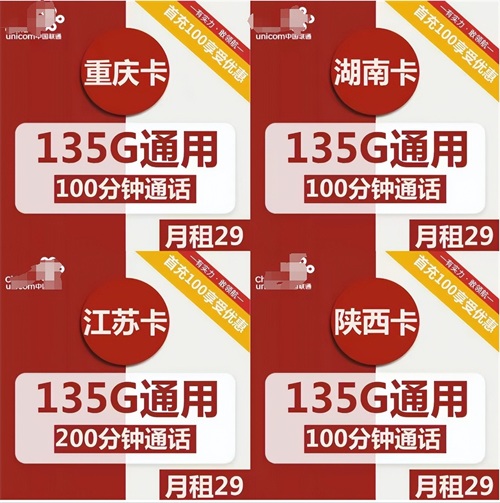 首先从大方向来说,网上的大流量的套餐以电信的套餐最为激进优惠,联通的次之。但是自从黑龙江联通下架之后,这几个月联通一直没有客服承认的长期套餐。只有两年优惠套餐到期自动续约,但是客服不可查。联通套餐从去年下半年到今年一直以135g加100分钟为主打,月租29。比如联通重庆卡,陕西卡,湖南卡,江苏卡。