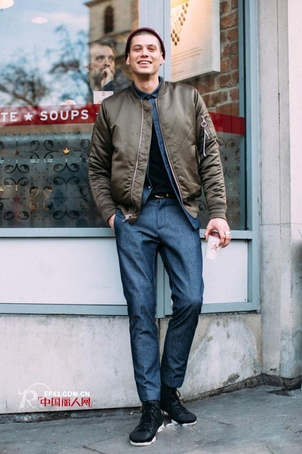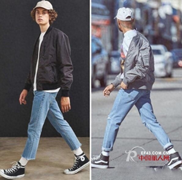 要说夹克外套配什么裤子比较时尚好看,首选的就是牛仔裤.每个男生家里肯定都有很多条牛仔裤吧,随便在衣柜里挑一条都可以和飞行夹克搭配,尤其是浅色纯色的牛仔裤搭配上夹克风的外套,能够打造出满满的美式复古风的味道,或者选择九分牛仔裤露出脚踝,在踩上一双球鞋,更是酷帅十足。