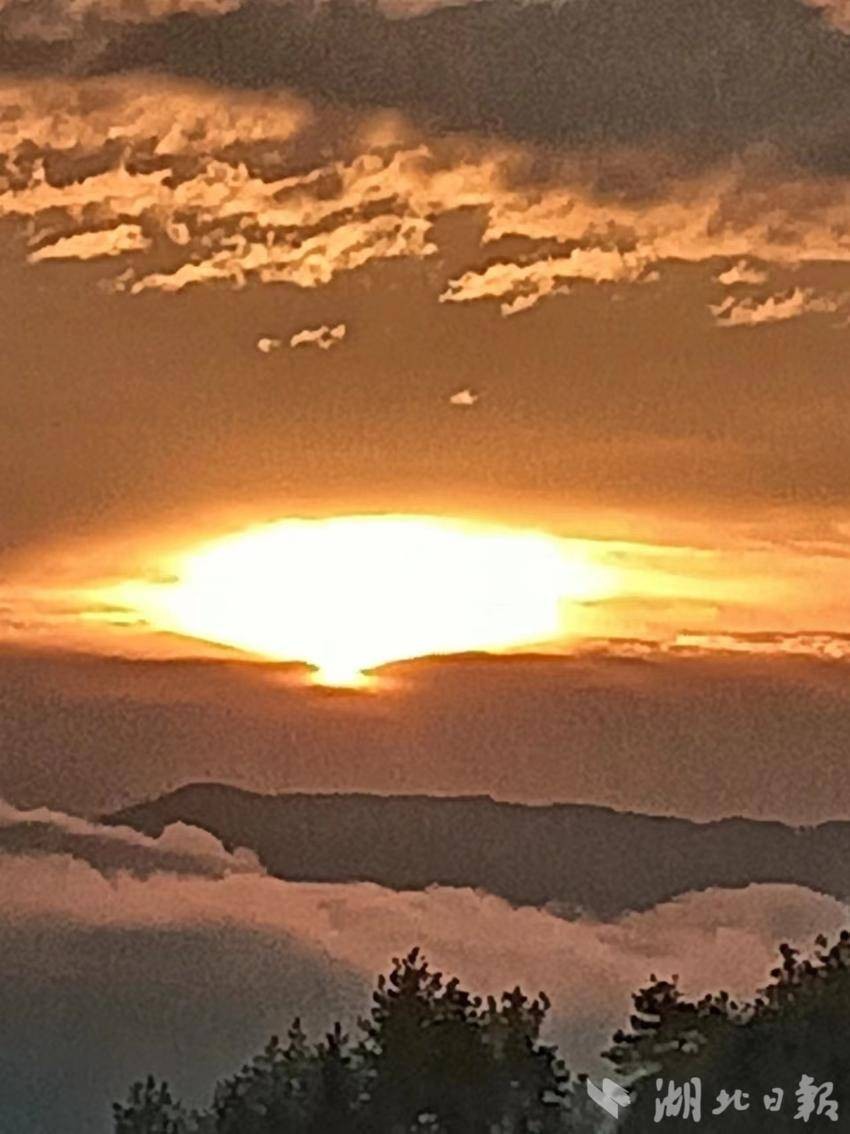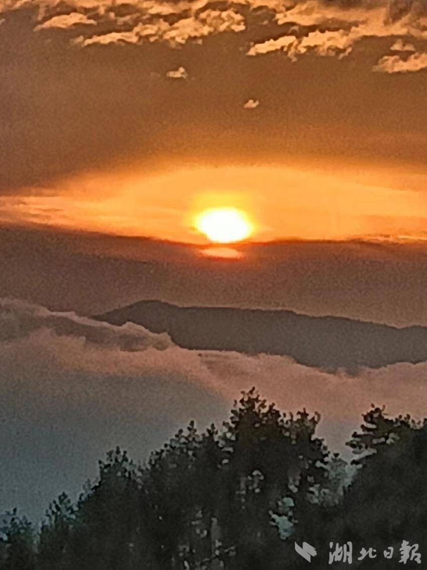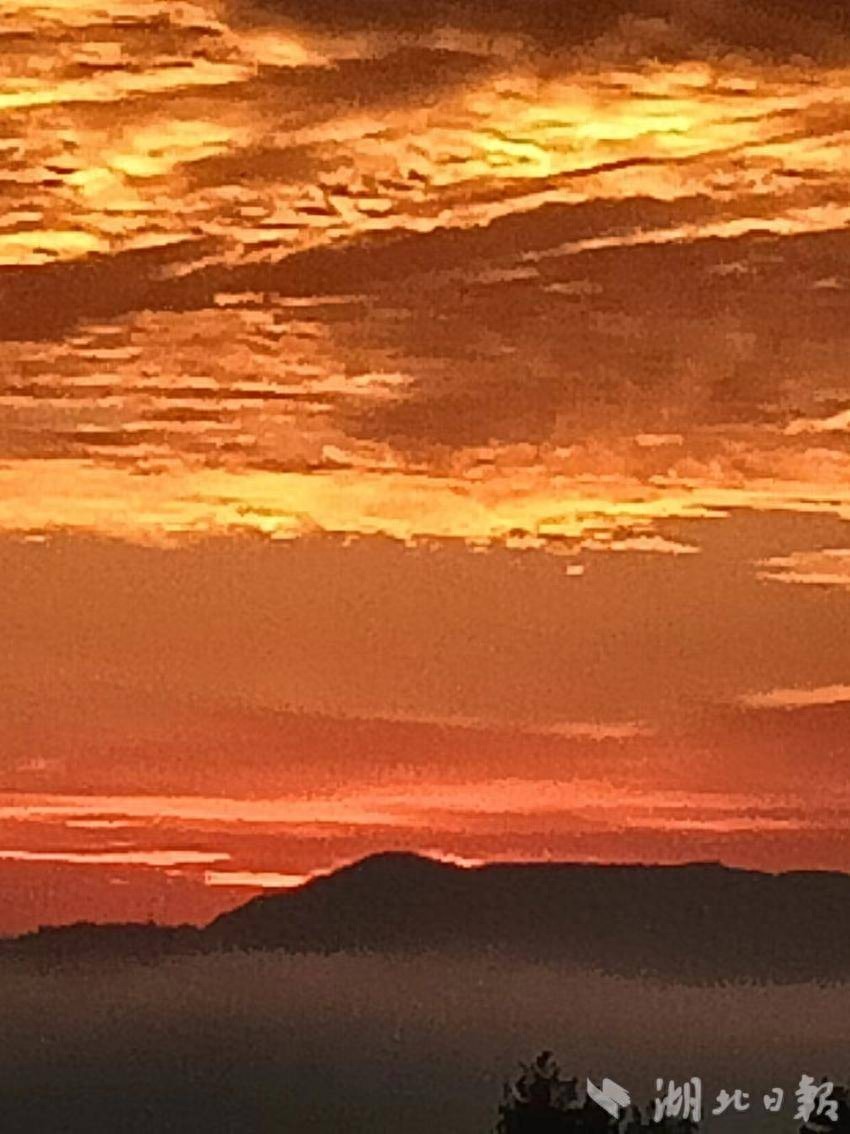 3月23日清早,于湖北省咸丰县大路坝区绿井山眺望重庆市黔江区中坝旭日东升。湖北日报客户端通讯员曹贞贵 摄