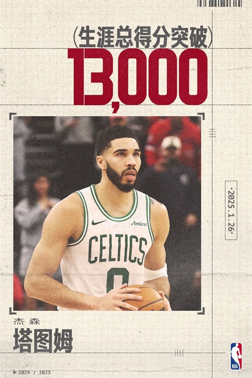里程碑之夜!杰森-塔图姆生涯总得分突破13000大关