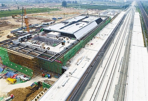 7月13日,紧张建设中的商合杭高铁商丘新区站。位于示范区境内的商合杭高铁商丘新区站站房总建筑面积7979平方米,车站采用线侧平站型,车站规模为2台4线,设到发线2条、基本站台1座、侧式站台1座、旅客通道1座。目前项目进展顺利,站房主体结构已基本完工,进入装修收尾阶段。