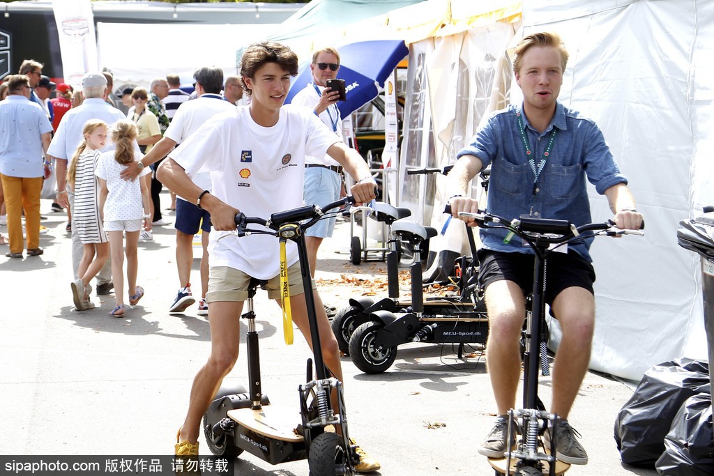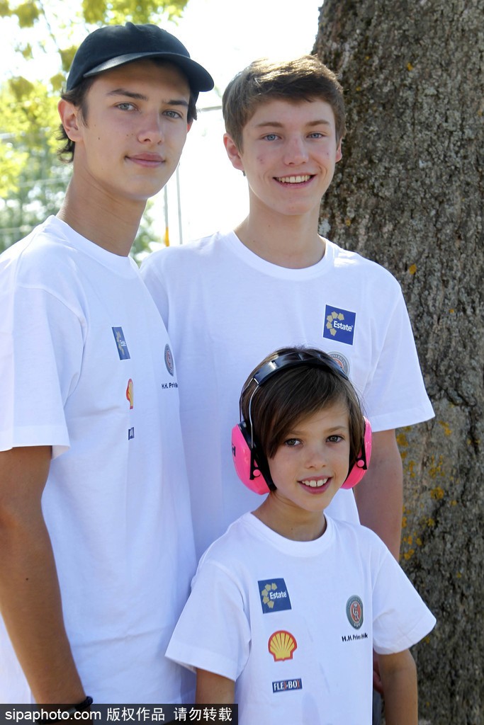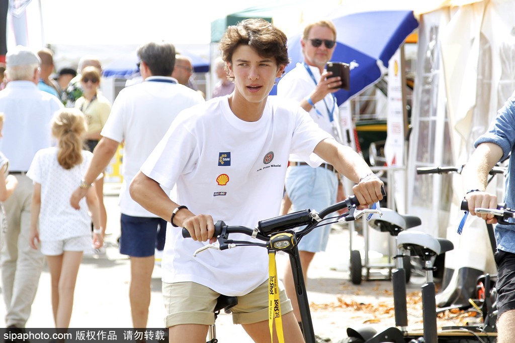 当地时间2018年8月4日,丹麦哥本哈根,丹麦王子约阿希姆(Prince Joachim)和三个儿子尼古拉王子(Prince Nikolai)、菲利克斯王子(Prince Felix)、亨利克王子(Prince Henrik)一起参加赛车活动。(图源:希帕中国)