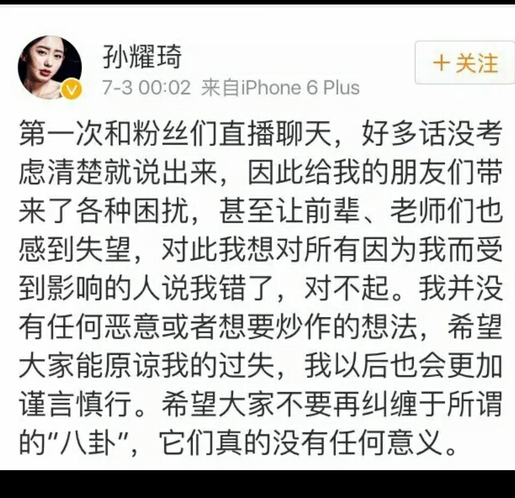 孙耀琦向赵丽颖道歉,却关注专黑赵丽颖的博主