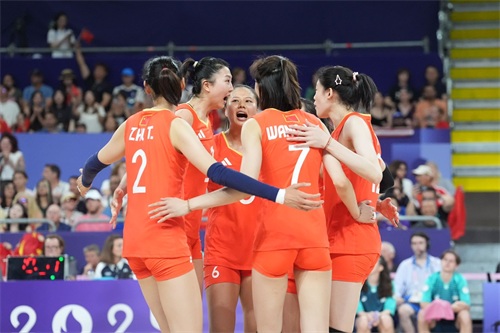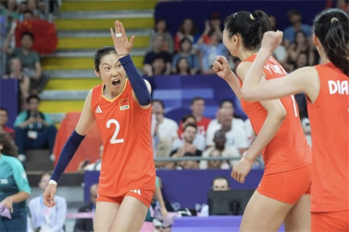 7月29日,在巴黎奥运会女子排球小组赛中,中国队对阵美国队。