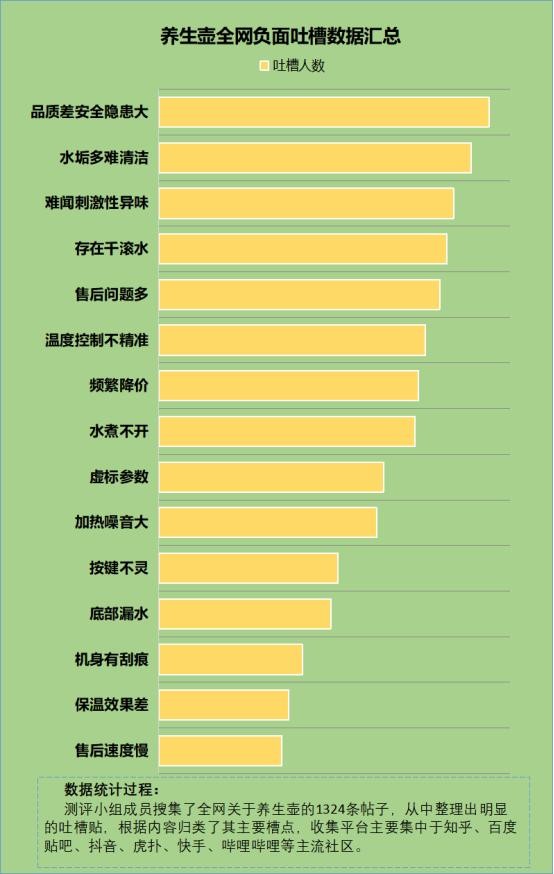 养生壶虽为小家电,但却也是实实在在的电器类产品,如果生产工艺不过关或是线材、发热元器件等材料不达标是非常危险的,存在极大的火灾甚至爆炸等安全隐患。因此我把专业调研机构统计的主流养生壶品牌性能、安全无毒性的测试结果,让大家看看,并结合下图为大家总结几款真正的优质品牌养生壶!