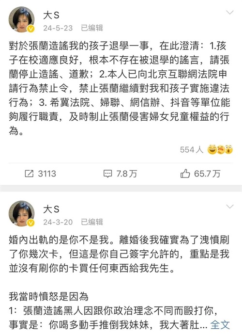 后来大S家属证实为造谣,成为了他人设崩塌的导火索。