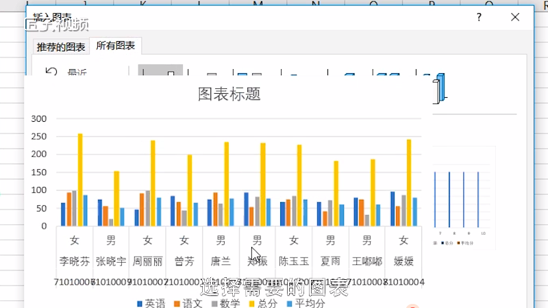 2、点击推荐图表,在弹出的对话框中点击所有图表;
